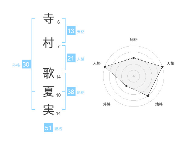 寺村 歌夏実さんを姓名の画数から五運を鑑定