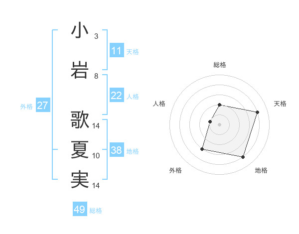 小岩 歌夏実さんを姓名の画数から五運を鑑定