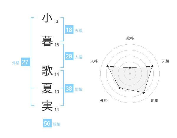 小暮 歌夏実さんの地格は38画の4点!