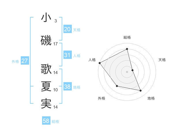 小磯 歌夏実さんの総格は58画の4点!