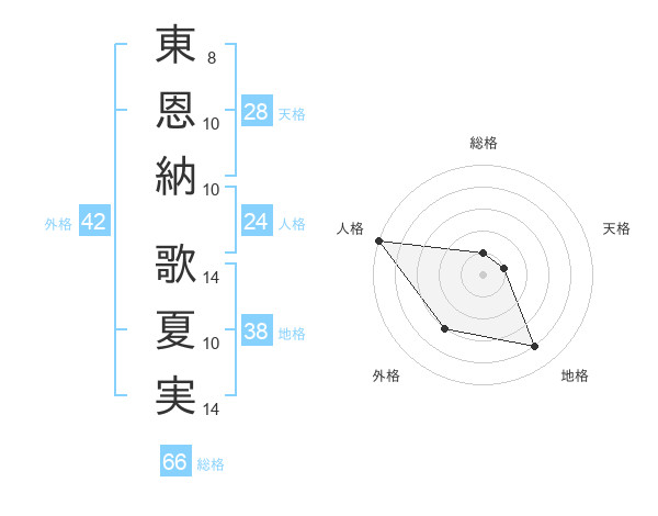 東恩納 歌夏実さんを姓名の画数から五運を鑑定