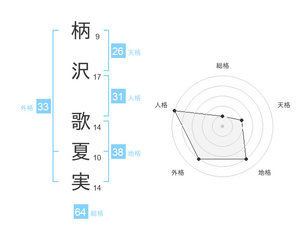 柄沢 歌夏実さんを姓名の画数から五運を鑑定