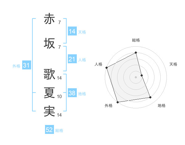 赤坂 歌夏実さんを姓名の画数から五運を鑑定