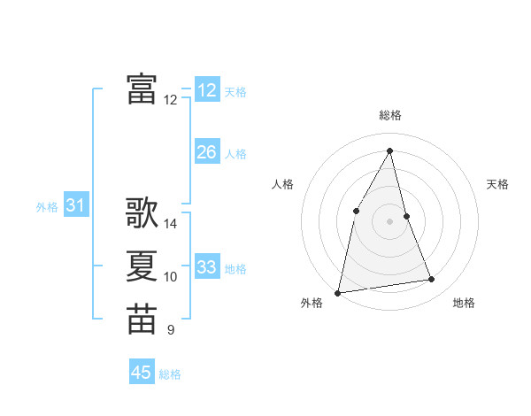 富 歌夏苗さんの総格は45画の4点!