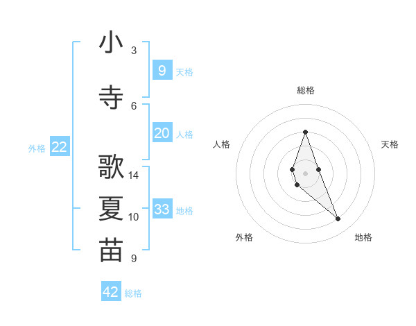 小寺 歌夏苗さんを姓名の画数から五運を鑑定