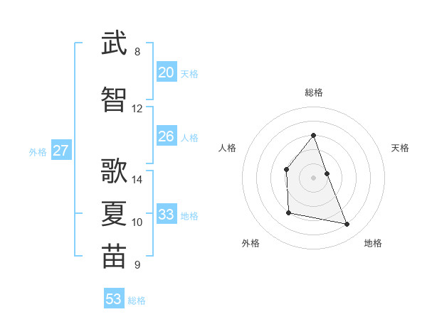 武智 歌夏苗さんを姓名の画数から五運を鑑定