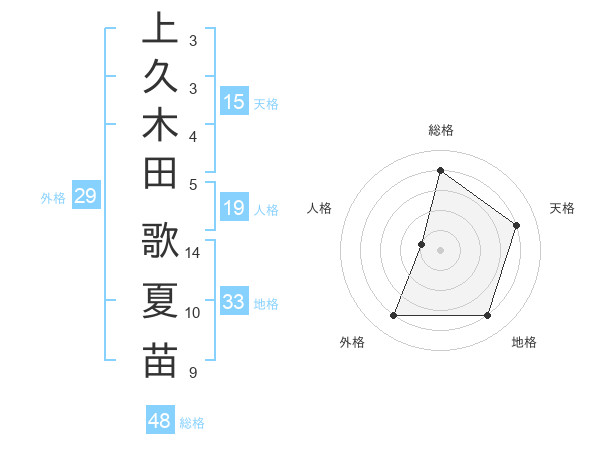 上久木田 歌夏苗さんを姓名の画数から五運を鑑定