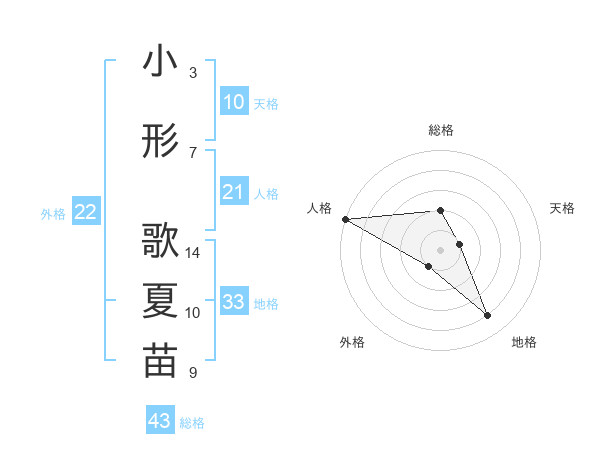 小形 歌夏苗さんを姓名の画数から五運を鑑定