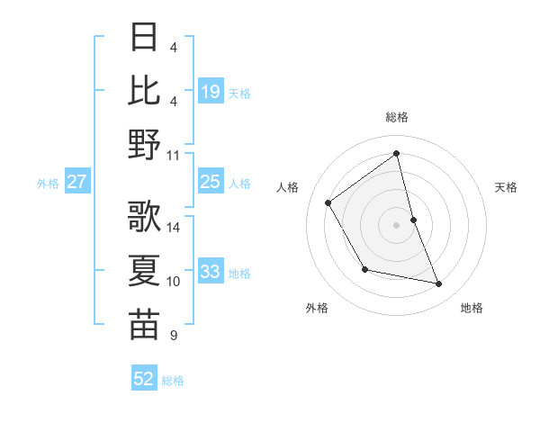 日比野 歌夏苗さんを姓名の画数から五運を鑑定