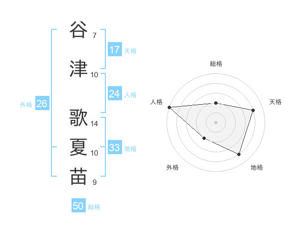 谷津 歌夏苗さんの天格は17画の4点!