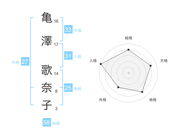 亀澤 歌奈子さんの総格は58画の4点!