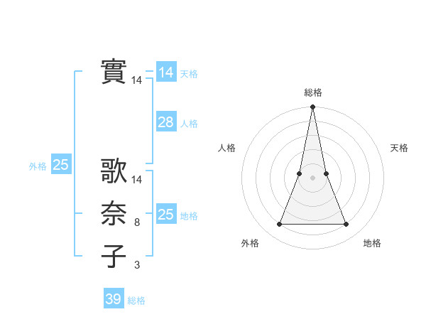 實 歌奈子さんの外格は25画の4点!