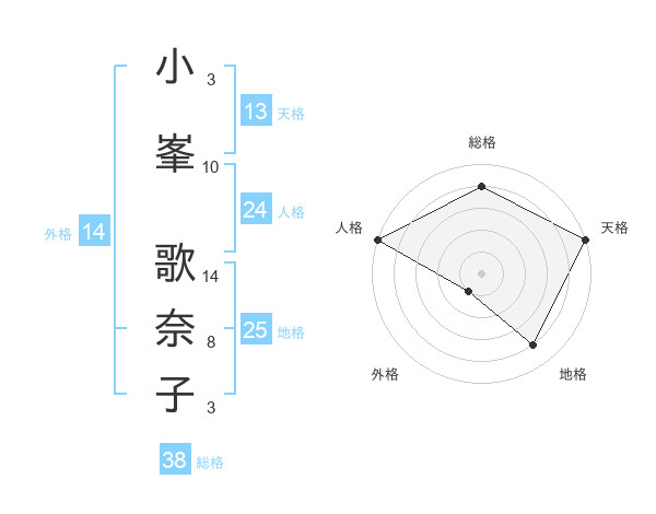 小峯 歌奈子さんの天格は13画の5点!