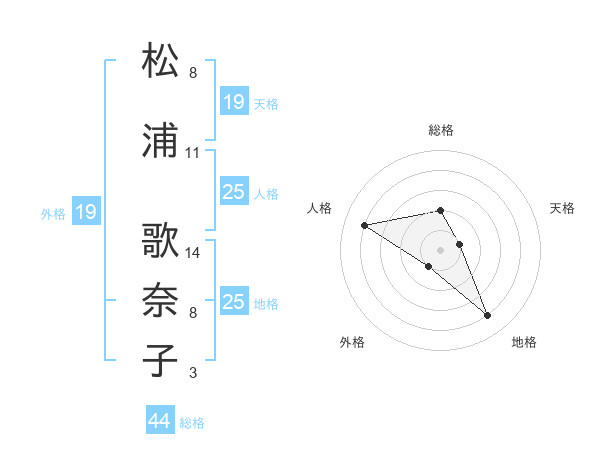 松浦 歌奈子さんを姓名の画数から五運を鑑定