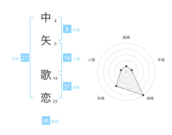 中矢 歌恋さんを姓名の画数から五運を鑑定