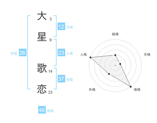 大星 歌恋さんを姓名の画数から五運を鑑定