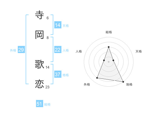寺岡 歌恋さんの総格は51画の3点!