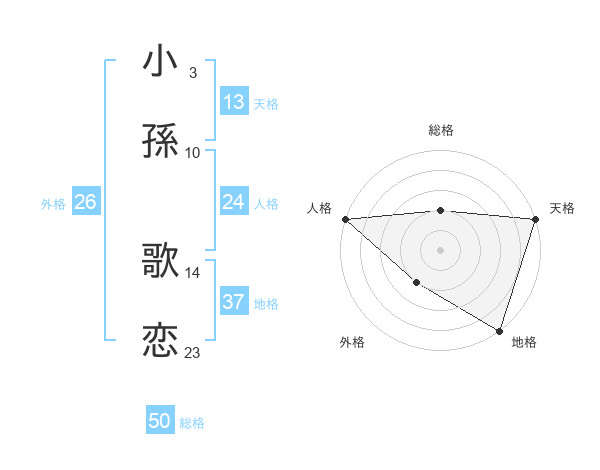小孫 歌恋さんの天格は13画の5点!