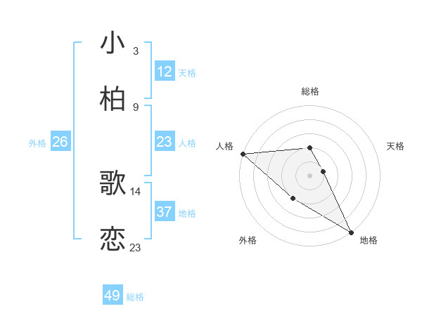 小柏 歌恋さんを姓名の画数から五運を鑑定