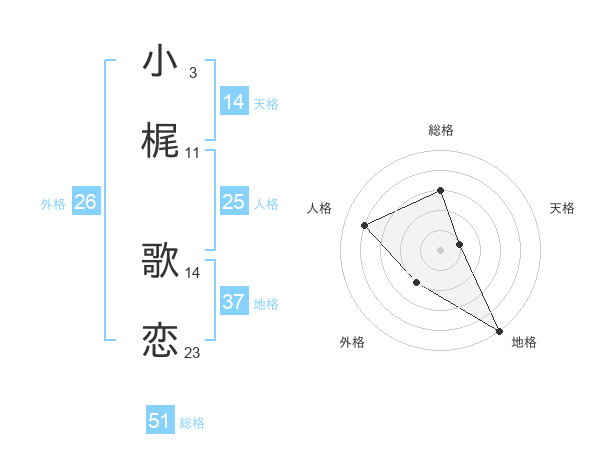 小梶 歌恋さんを姓名の画数から五運を鑑定