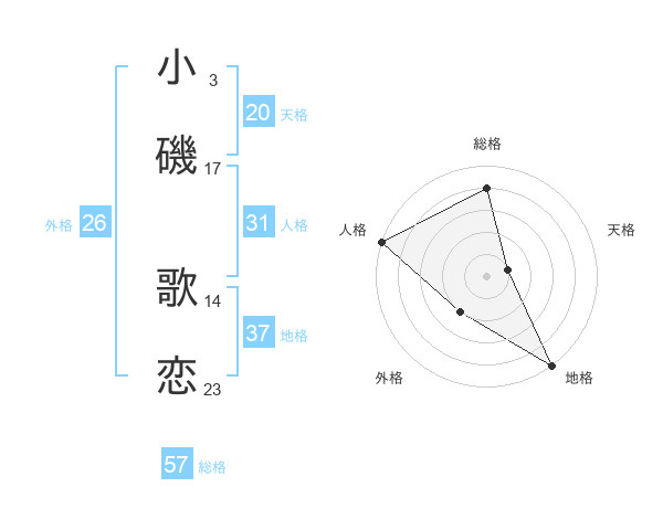 小磯 歌恋さんを姓名の画数から五運を鑑定