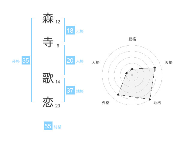 森寺 歌恋さんの総格は55画の1点!