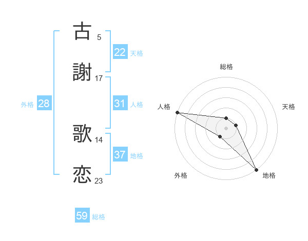 古謝 歌恋さんを姓名の画数から五運を鑑定