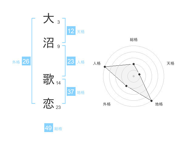 大沼 歌恋さんを姓名の画数から五運を鑑定