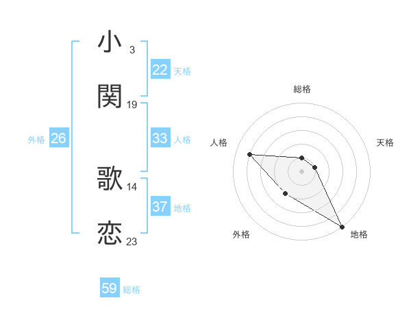 小関 歌恋さんの総格は59画の1点!