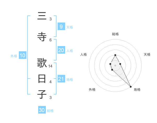 三寺 歌日子さんの総格は30画の2点!