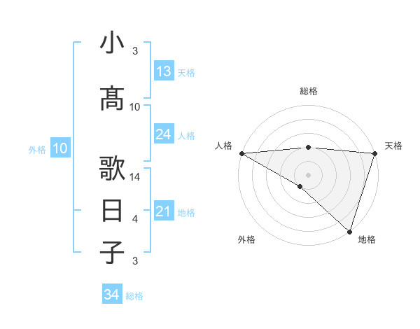 小髙 歌日子さんの総格は34画の2点!