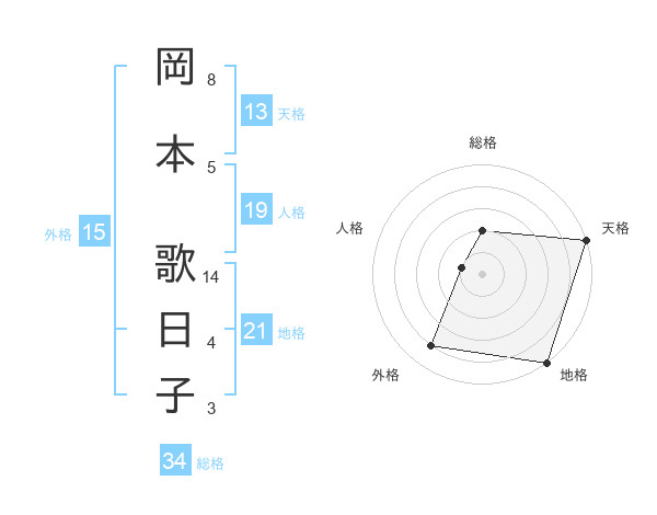 岡本 歌日子さんの天格は13画の5点!