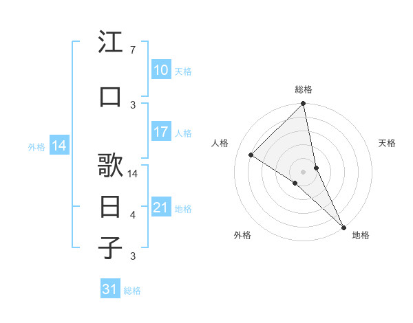 江口 歌日子さんを姓名の画数から五運を鑑定