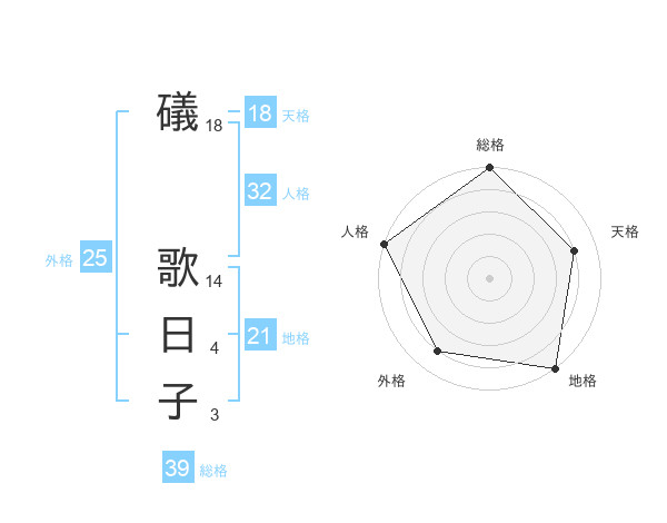 礒 歌日子さんの外格は25画の4点!