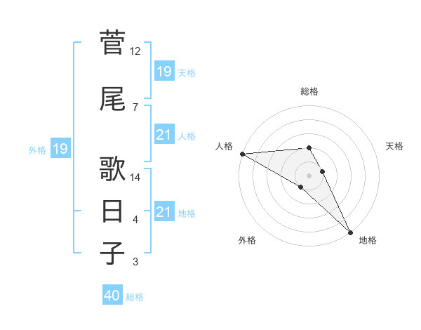 菅尾 歌日子さんを姓名の画数から五運を鑑定