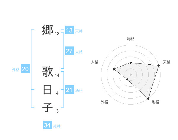 郷 歌日子さんを姓名の画数から五運を鑑定