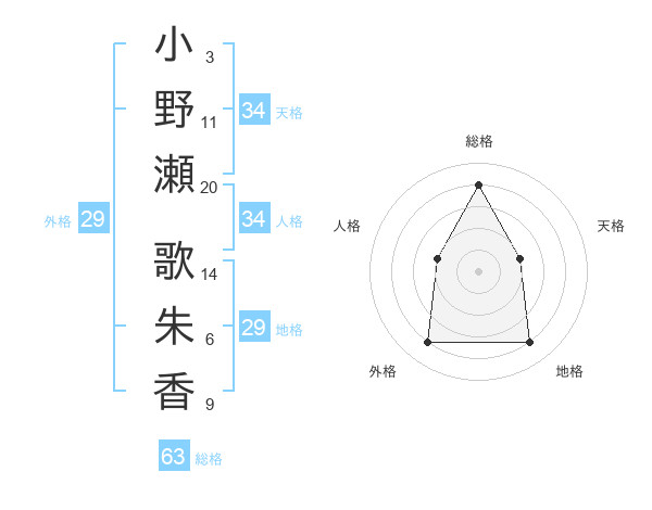 小野瀬 歌朱香さんを姓名の画数から五運を鑑定