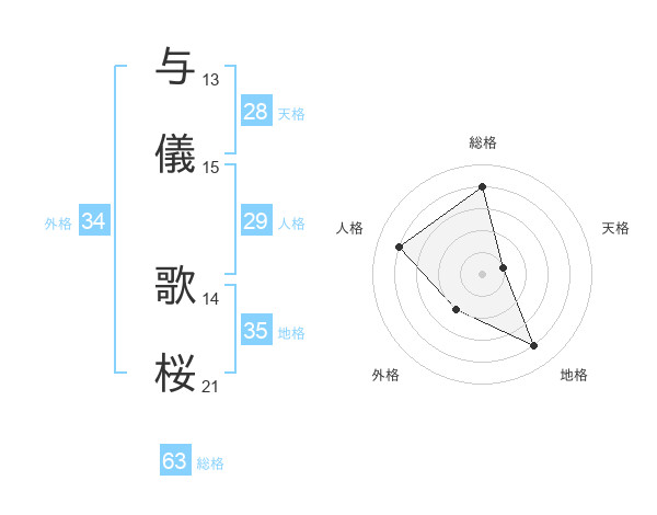与儀 歌桜さんを姓名の画数から五運を鑑定