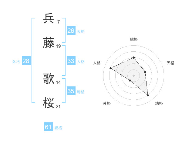 兵藤 歌桜さんの総格は61画の3点!