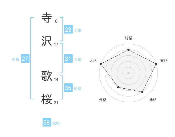 寺沢 歌桜さんを姓名の画数から五運を鑑定