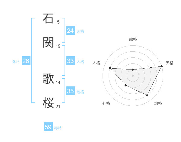 石関 歌桜さんの天格は24画の5点!