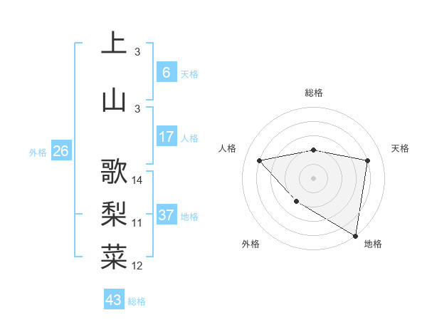 上山 歌梨菜さんの総格は43画の2点