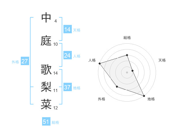 中庭 歌梨菜さんを姓名の画数から五運を鑑定