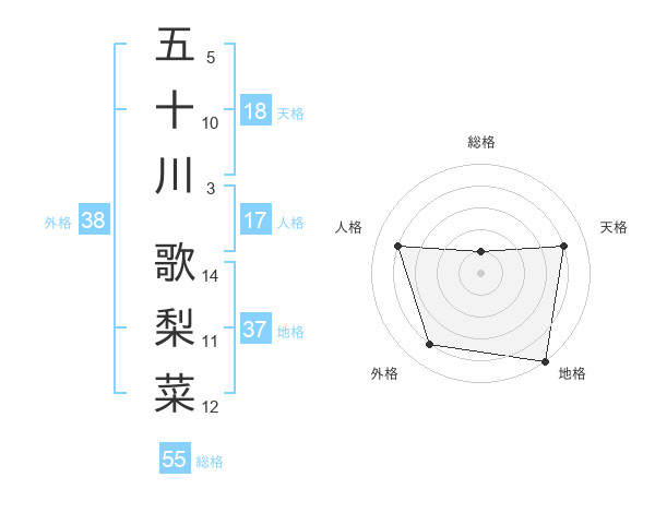 五十川 歌梨菜さんの総格は55画の1点!