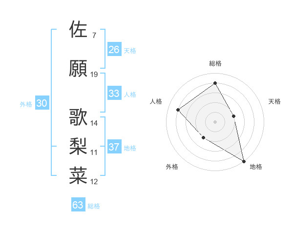 佐願 歌梨菜さんを姓名の画数から五運を鑑定