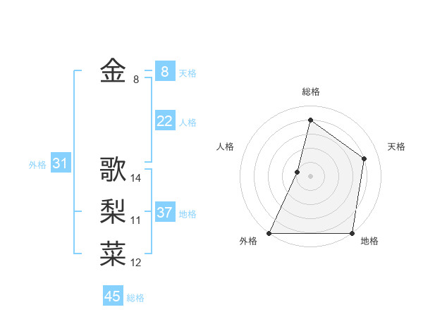 金 歌梨菜さんの総格は45画の4点