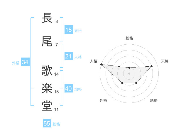 長尾 歌楽堂さんを姓名の画数から五運を鑑定