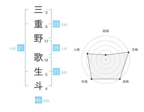 三重野 歌生斗さんを姓名の画数から五運を鑑定