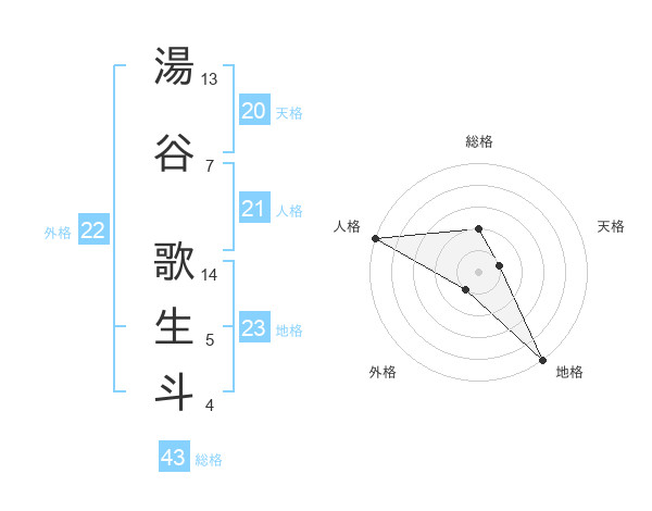 湯谷 歌生斗さんを姓名の画数から五運を鑑定