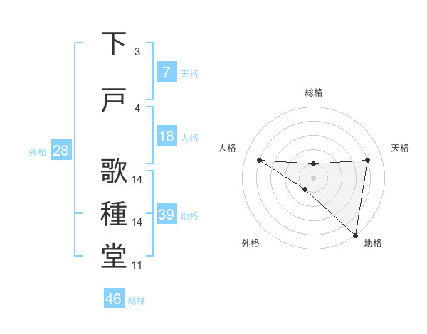 下戸 歌種堂さんを姓名の画数から五運を鑑定
